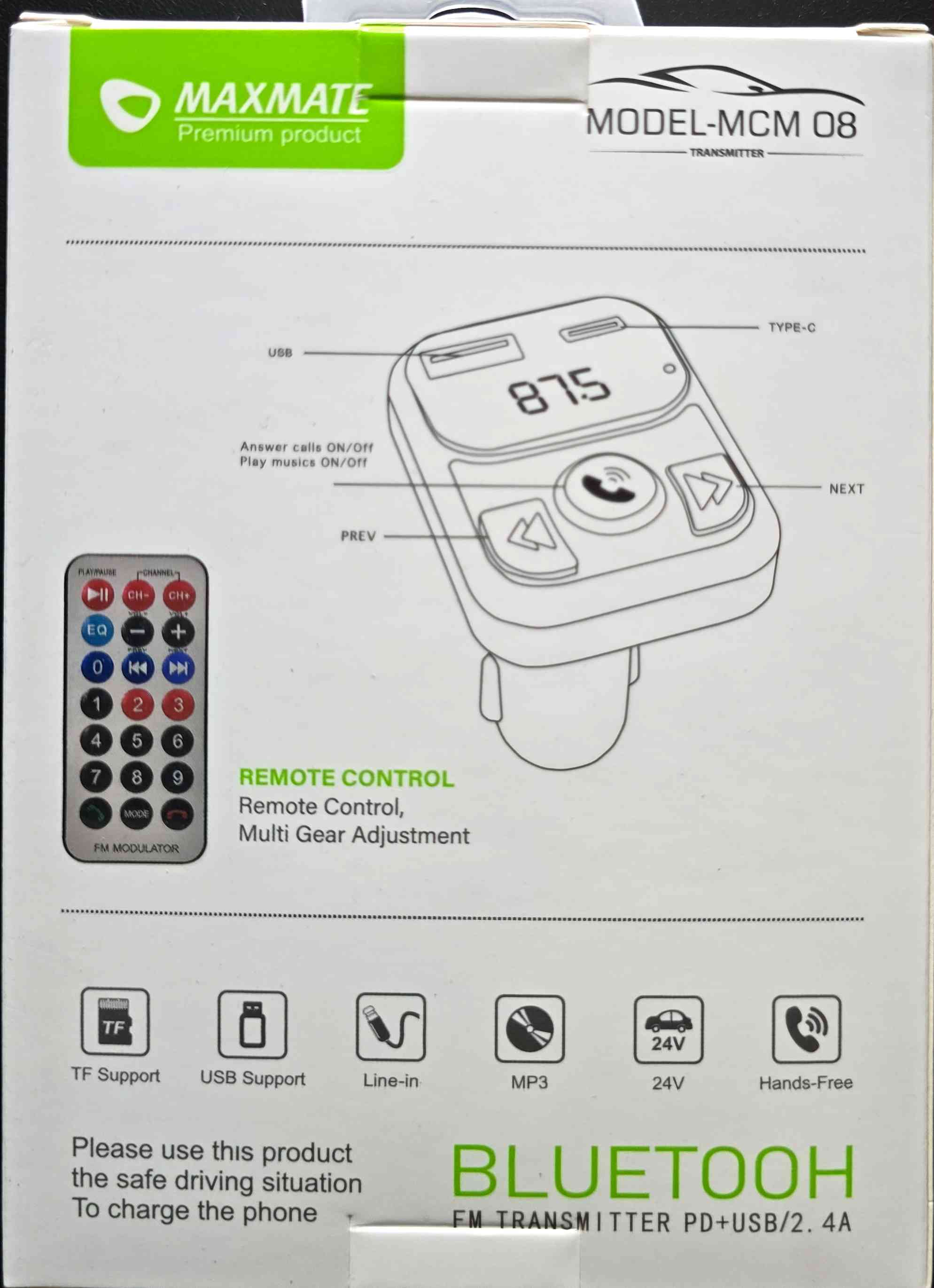 Car Mp3 Transmitter USB 2.4A & Type C PD20W